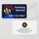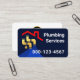 A dark blue cover features a set of leaking gold pipes under a red rooftop building. To the right is the oversize business name "Plumbing Service" which you can change with the contact details.
