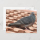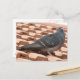 This postcard features a photograph of a wild Pigeon sitting on top of a roof. The pigeon has beautiful mottled plumage and looks very content upon its rooftop perch.