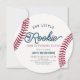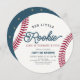 This cute and retro "Little Rookie" boy's birthday circle invitation features a baseball. The reverse side features a navy blue background with faux gold star patterns. Personalise it for your needs. You can find matching products at my store.