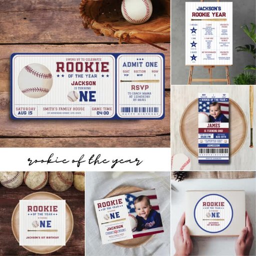 Rookie of the Year 1st Birthday Baseball Invitation
