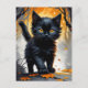 Embrace the enchantment of Halloween with our endearing black kitten, nestled amidst the splendour of autumn. A bewitching companion, this cute feline brings a touch of magic to the season.