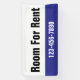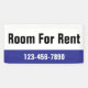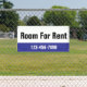 This outdoor banner is blue, black, and white. You can edit the text to meet your needs. You can add your custom message (shown: Room For Rent) and phone number. The top is white with black text. The bottom is blue with white text for your phone number or custom text. All text can be edited or deleted.