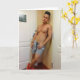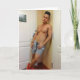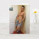 This card features a photograph of a sexy young man who makes you wonder what it would be like when room service stays for the evening!
