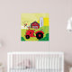 A rooster on a red tractor on the farm. This design looks really effective on these Poster