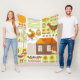 Rooster and two hens, eggs, flowers, house, drawin fleece blanket