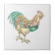 Colourful illustration of a rooster inspired by a vintage embroidered fabric on decorative tiles / trivets. Copyright Dominic A. White.