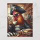 Rooster Pirate With a Coffee in a bookstore Postcard