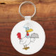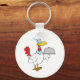 A rooster serving food carrying a tray. This design looks really effective on these Keychain