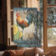 "Modern Farmhouse Kitchen, Rooster Sunflower Farm Fresh Typography Decoupage, Heavy Weight Extra Large Sized Decoupage Tissue Paper." An exquisitely hand painted rooster stands proudly with vintage yellow sunflower blossoms, chicken wire texture background and rusted texture leaf foliage greenery. The artwork was painted and graphically designed by internationally licensed artist and designer, Audrey Jeanne Roberts. Copyright.