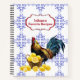 This design has a Mediterranean farmhouse look. The front cover features a rooster with a basket full of lemons, over a background blue and white pattern. There's a box for you to add your own text. These versatile notebooks are available in three styles and come with a choice of six spiral colours. Take your personal design even further by choosing one of eight page design options including College Ruled, Graph and Recipe. The sample photo shows the recipes.