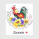 Rooster with Flowers Sticker.