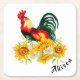 Rooster with Sunflowers Personalised Square Paper Coaster