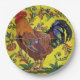 Rooster Yellow Floral Tile Folk Art Country Paper Plate