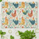 Roosters and Flowers Tea Towel