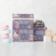 These watercolor roosters wandered into hydangea bushes and tried to hide, but you can still see their combs and beaks peeking out. The flowers are pink, pinkish purple, purple, and blue, and the roosters feathers reflect the floral colors with a mix of gray. The backgound is a mauve like gray purple. This farmhouse French chic design would make a lovely wrapping paper for a birthday, retirement, friend gift, teacher, or more.