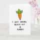 This greeting card features a simple white background with a stylized orange carrot centered near the top, outlined in black and topped with jagged green leaves that feel fresh and friendly 🌷. The carrot’s slightly curved shape and tidy outline give it a light, approachable look, like a small gesture meant to get someone’s attention in a sweet way. Beneath the illustration, the message is stacked in three centered lines in rounded black lettering, reading “I JUST WANNA REACH OUT & RABBIT,” with the ampersand tucked neatly into the middle line. The pun pairs the carrot with a bunny idea 🐰, turning the scene into a flirty nudge that could also read like a warm note between close friends. Plenty of open white space surrounds the art and text, so the orange and green stand out without crowding the page. The contrast of black outlines and black text keeps everything easy to read while still feeling casual and modern. The top half is dominated by the carrot graphic, and the lower half is anchored by the centered black phrase beneath it.
