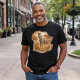 Textured, blended edges ensure the artwork integrates naturally into the fabric, avoiding harsh borders and giving the design a lived-in, garment-ready feel. The gold-sand typography is designed to remain bold and visible on dark tees without overpowering the artwork.