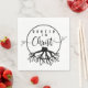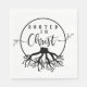 Rooted in Christ, this design features a black and white design with roots of a tree and text saying "Rooted In Christ".