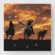 Team ropers trying to get the last steer before the sunset. A very cool southwestern cowboy ranching image.