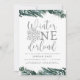 This first birthday party invitation features deep green winter pine with silvery splashes and a silver glitter snowflake and the saying "Winter Onderland" This gender neutral design is perfect for a wintery December or Christmas holiday themed 1st birthday celebration.