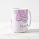 The Rosaline Mandala 15 oz. Personalized Mug in dreamy pink and soft violet adds a meditative touch to your morning routine or any time you need that sustaining cup of coffee, tea, or hot chocolate. It also makes a thoughtful gift for your favorite yoga teacher. This extra-large size is especially cosy to wrap your hands around. Would also make a thoughtful gift for your favorite yoga teacher. Available in an 11 oz. version as well.