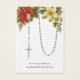 Remember your loved ones in prayer with this beautiful religious memorial funeral prayer card with poinsettias and the holy rosary. . All text and fonts can be modified]