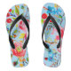 Cheerful rose and cherry floral pattern on a lovely pair of summery blue flip-flops. Customisable in your choice of background colour.