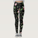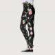 Rose and leaves on romantic black background leggings