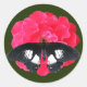 A digital painting of a blooming red rose being visited by a black butterfly.