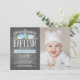 Rose Banner Chalkboard Blue Baptism Invitation