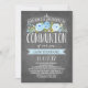 This Communion Invitation features lovely watercolored flowers and a mix of modern typography, all on a trendy chalkboard background. Send your guests an invite they won't forget! For an even more memorable invitation select a die-cut shape, textured paper or a double thick paper.