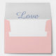 Romantic soft rose pastel light pink Wedding. Love is written in light blue script on top of flap. Backside has return address in black text. Hand-write addresses on front for a personal touch. Original Designs by TamiraZDesigns.