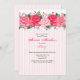 A feminine invitation with warm shades of pink and red roses accompanied with a delicate pink and white stripe background. Suitable for any feminine celebration.