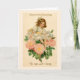 This vintage Valentine features a young girl sitting on top of a pretty bouquet of pink roses. Original text on the card says “Valentine Greetings To the One I Love”.