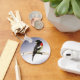 This keychain features the male Rose-breasted Grosbeak, a striking bird with a brilliant rose breast contrasted by black and white feathers and a strong blocky beak. He is a songbird with a wonderful melody. The female is brown and white. They breed in cool temperate North America, migrating to tropical America in winter.