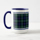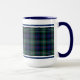 Coffee mug with the hunting tartan for Clan Rose and its septs, including Geddes. Dark green, royal blue and black Scottish plaid pattern from 1831, with bright red and white accents.