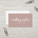 Simple and elegant business card design features your name or business name in modern, hand lettered script typography. Add an additional line of text beneath in clean, modern block lettering for your occupation or title. Personalise the reverse side with your contact details. A chic and professional choice in earth tone dusty rose clay for any occupation.