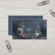 Define your brand with the ethereal romance and timeless artistry of a hidden garden using this captivating business card. The design features an atmospheric misty mountain landscape set against a dark, nocturnal sky. Towering pine trees frame a deep valley, creating a mysterious, tranquil scene. The foreground is lavishly framed by an abundant, layered garden of vintage-style roses and wild florals in a sophisticated palette of soft blush pink, creamy white, and deep purple. A delicate, intricate metallic gold rectangular frame sits centrally, elegantly intertwining with the foliage to highlight the serene landscape and provide a refined space for your key information. This artwork beautifully merges the stillness of a classical painting with rich, romantic botanical detail, resulting in a powerful and truly unique brand statement. This business card is ideally suited for a luxury event stylist specializing in romantic, twilight-themed celebrations, a boutique hotelier wanting to convey a picturesque, tranquil setting, or a vintage fashion curator whose collection is inspired by dark, rich romance. It would also perfectly suit a fine art print seller specializing in atmospheric landscapes, or a bespoke stationery designer focused on classic, detailed paper goods.