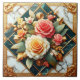 A detailed floral artwork features roses in soft hues, surrounded by intricate gold and green elements, showcasing a sophisticated decorative style.