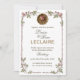 Vintage floral frame with cascading pink rose flowers and a faux pink and gold wax seal at the top. Elegant editable text to write in the time, place and pertinent wedding details to save the date for that special day.