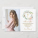 Rose Floral Garland Confirmation Photo Gold Script Thank You Card