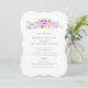 Floral wedding invitation featuring watercolor roses in purple.