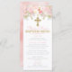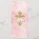 A pink floral garden wall adorns a modern 3-course menu, with choice of entree and dessert. An elegant menu adorned with a glitter cross on the back, perfect to set down on the tables before guests flip them around to reveal the nights' courses. Available on a traditional 4"x9" elegant card.