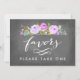 This print features watercolored floral roses and says "Favours. Please take one." in purple with chalkboard background