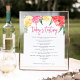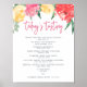 Charming floral wine tasting menu sign displays your wine selections adorned with vibrantly coloured watercolor flowers in pink, red and yellow. Designed to match our