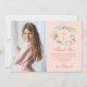 Featuring a pretty rose watercolour floral garland on a blush pink background. This chic first holy communion thank you card can be personalised with your own photo and special thank you message. You can customise the reverse to your favourite colour or add additional information. Designed by Thisisnotme©