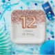 Rose gold 12th birthday party paper plates to decorate the birthday party tables white textured printed paper design.