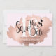 Modern, trendy Sweet 16 Birthday Save The Date Card. Design features rose gold faux foil stroke on a bright pink background, typography script ''save the date'' and details in bold lettering.