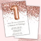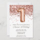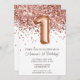 Rose Gold 1st Birthday Party Invitation and rose gold elegant modern 1st birthday party invitation for a 1 year old girl with modern script writing and fun foil balloons.