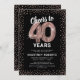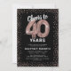 Elegant fortieth birthday party invitation featuring a stylish black background that can be changed to any colour, rose gold sparkly glitter, forty rose gold hellium balloons, and a modern 40th birthday celebration text template that is easy to personalise.
